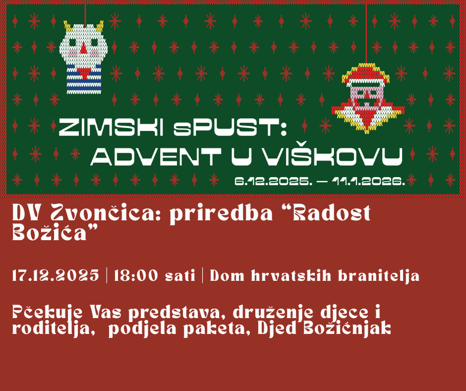 DV Zvončica 17. prosinca 2025. u 18 sati u Domu hrvatskih branitelja priprema božićnu priredbu „Radost Božića“. Posjetitelje očekuje predstava te veselo druženje djece i roditelja, uz podjelu paketa i dolazak Djeda Božićnjaka.