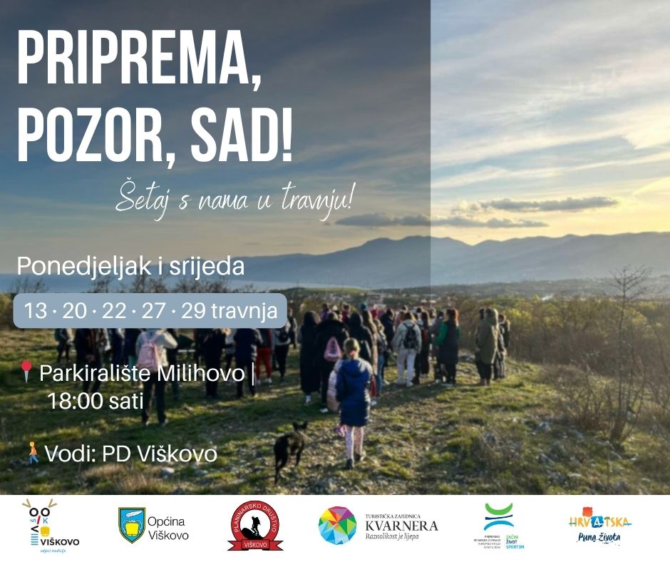 Proljeće je idealno vrijeme za boravak u prirodi, a Viškovo i njegova okolica nude mnoštvo zanimljivih staza i skrivenih kutaka koje vrijedi otkriti. Pozivamo vas da nam se pridružite na besplatnim proljetnim šetnjama Priprema, pozor, sad! i zajedno istražimo ljepote viškovskih šetnica.